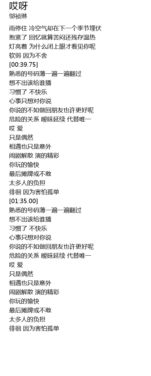 | [02:33.68] | 徘徊 因为害怕孤单 |
