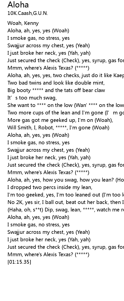 | [00:44.88] | Aloha, ah, yes, how you swag, how you lean? (How you do dat?) |