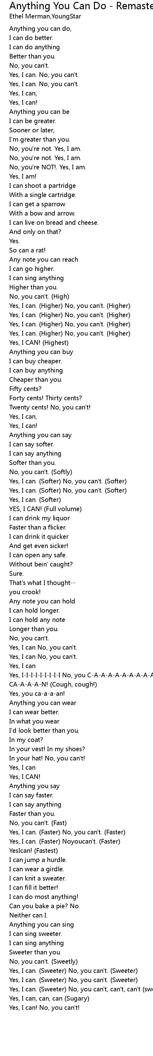 Yes, I can. (Sweeter) No, you can't, can't, can't (sweeter) |