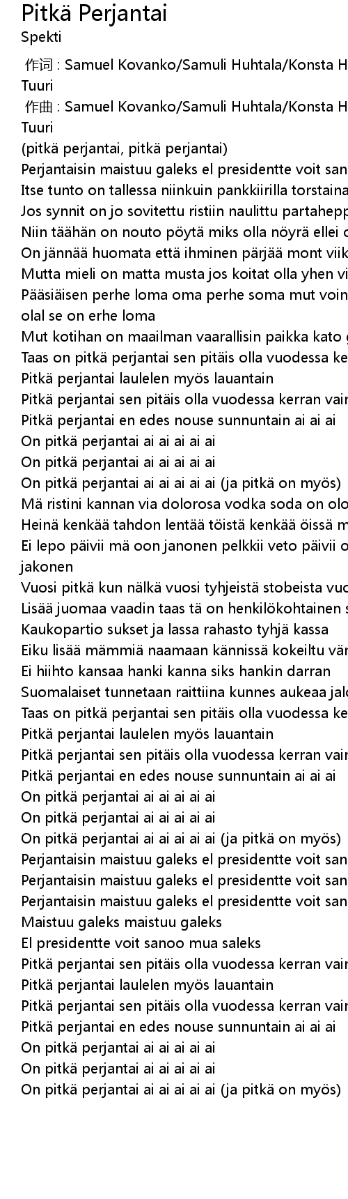 | [03:06.382] | On pitk perjantai ai ai ai ai ai ja pitk on my s |