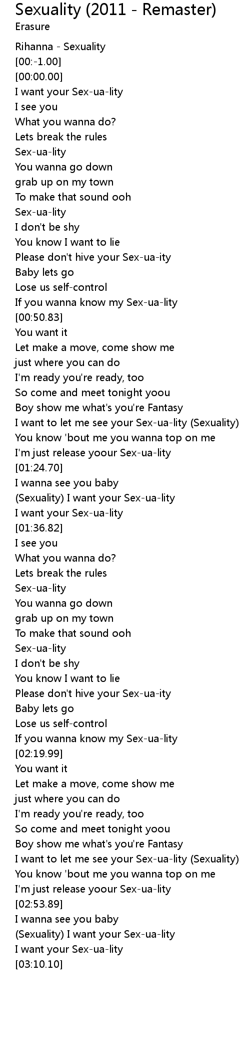 I'm just release yoour Sex-ua-lity |