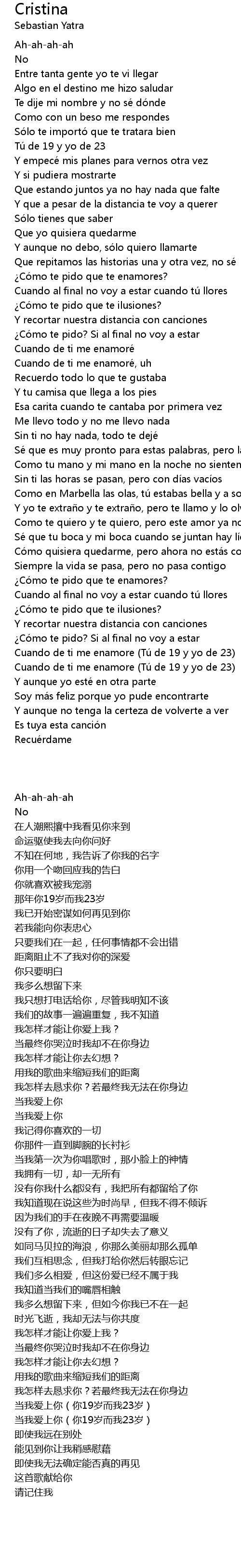 | [02:46.22] | Cuando de ti me enamore Tú de 19 y yo de 23 |
