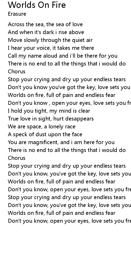 | Worlds on fire, full of pain and endless fear | |