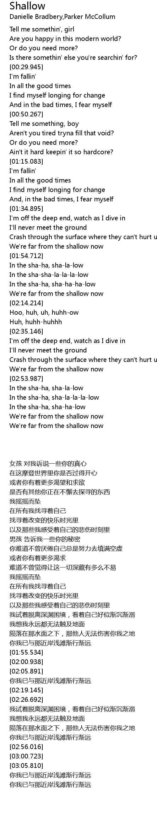 We're far from the shallow now |