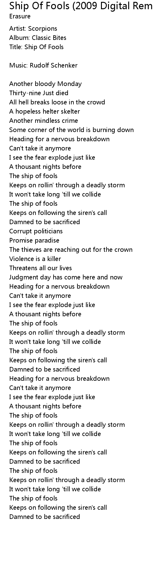 Title: Ship Of Fools |