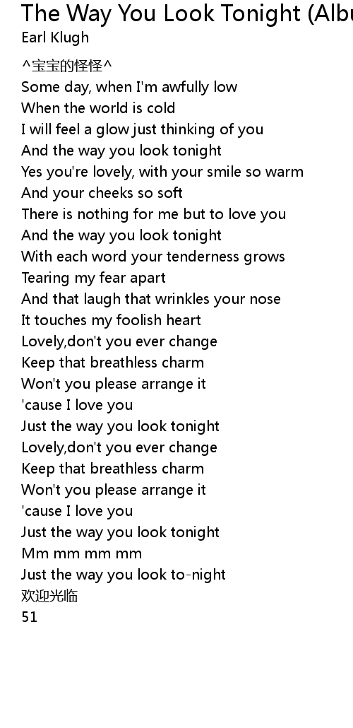 | [00:59.38] | And the way you look tonight |
