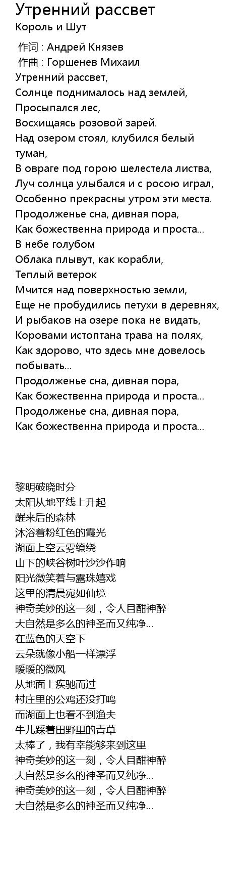 Утренний рассвет, |