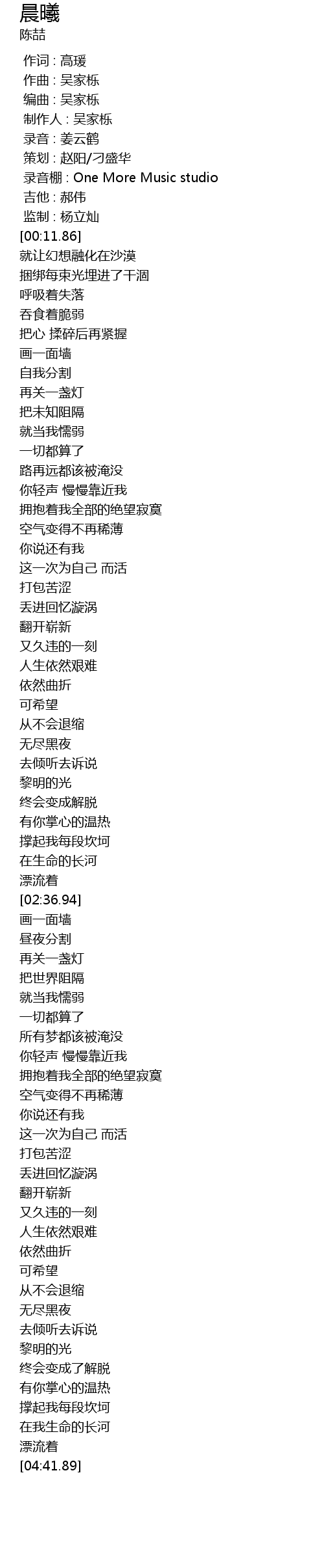 | [00:06.000] | 录音棚 : One More Music studio |