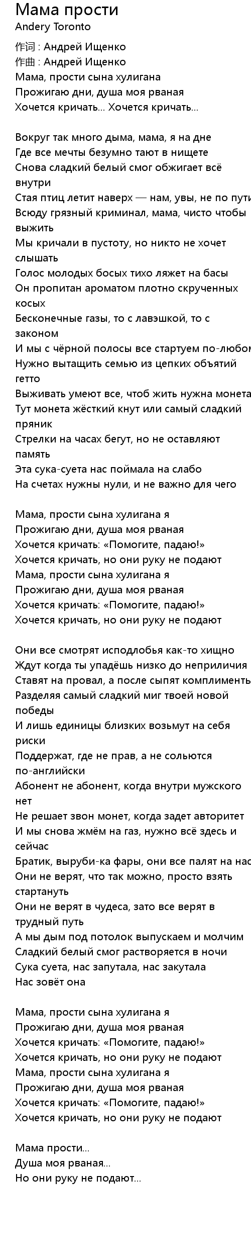 Мама, прости сына хулигана я |
