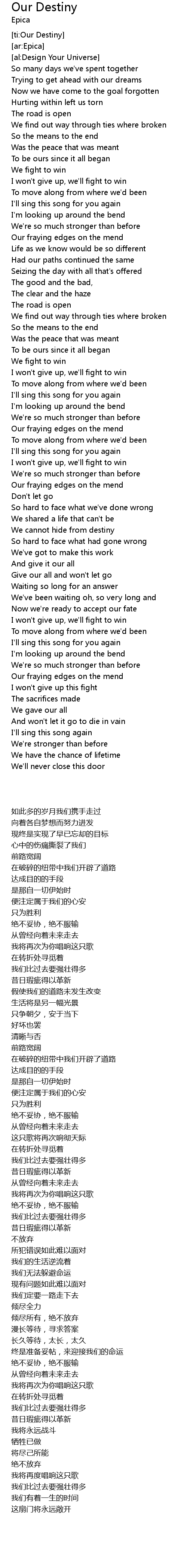 [ti:Our Destiny] |