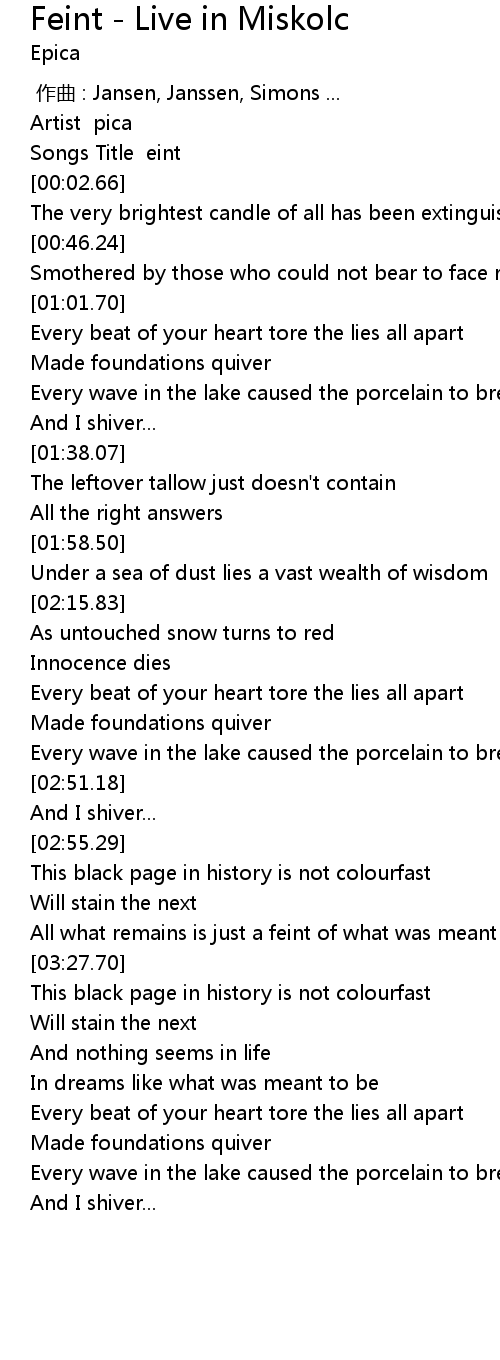 | [03:17.71] | All what remains is just a feint of what was meant to be |