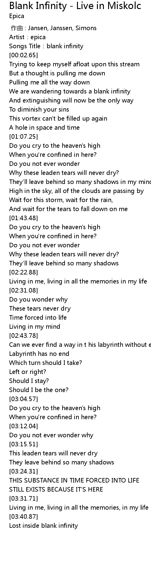 | [03:51.92] | Lost inside blank infinity |