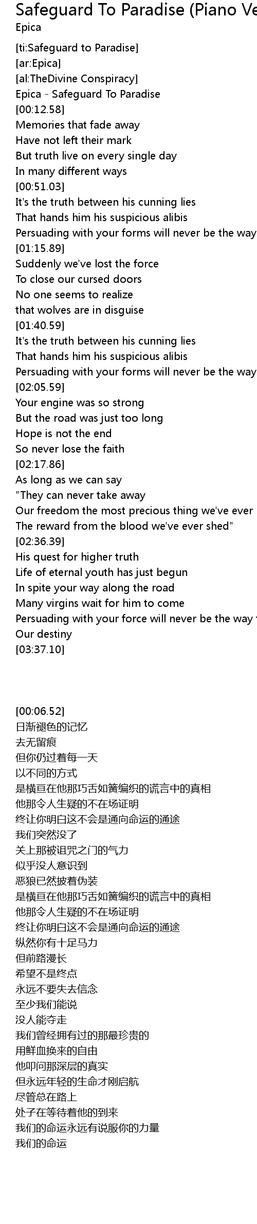 [ti:Safeguard to Paradise] |