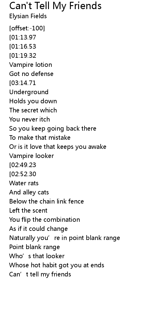 | [00:25.75][03:14.71] | I can' t tell my friends |