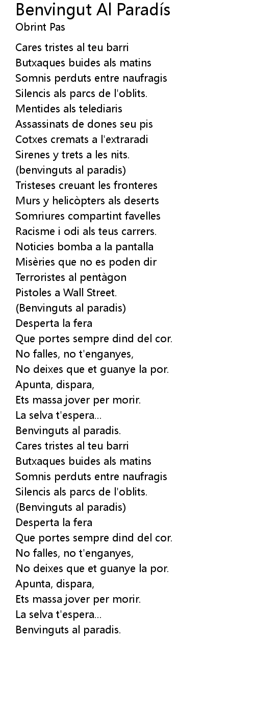| Song | Benvingut Al Paradís |