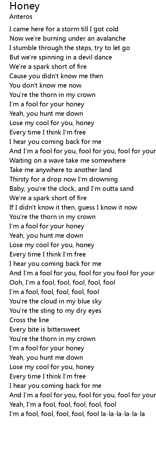 And I'm a fool for you, fool for you fool for your honey |