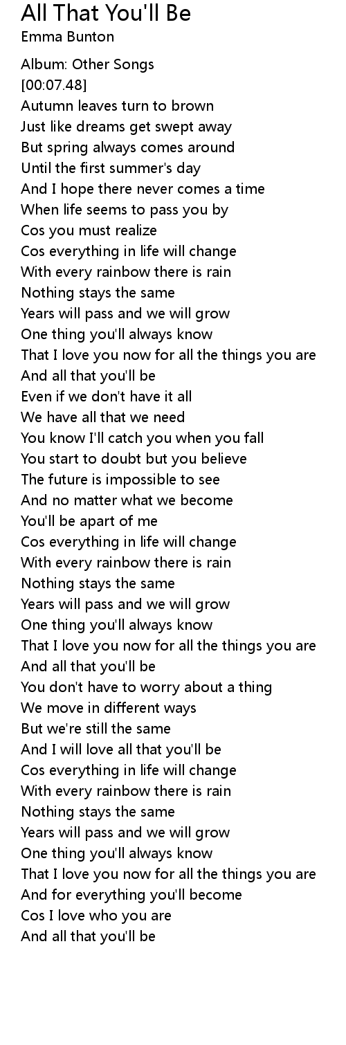 And all that you'll be |