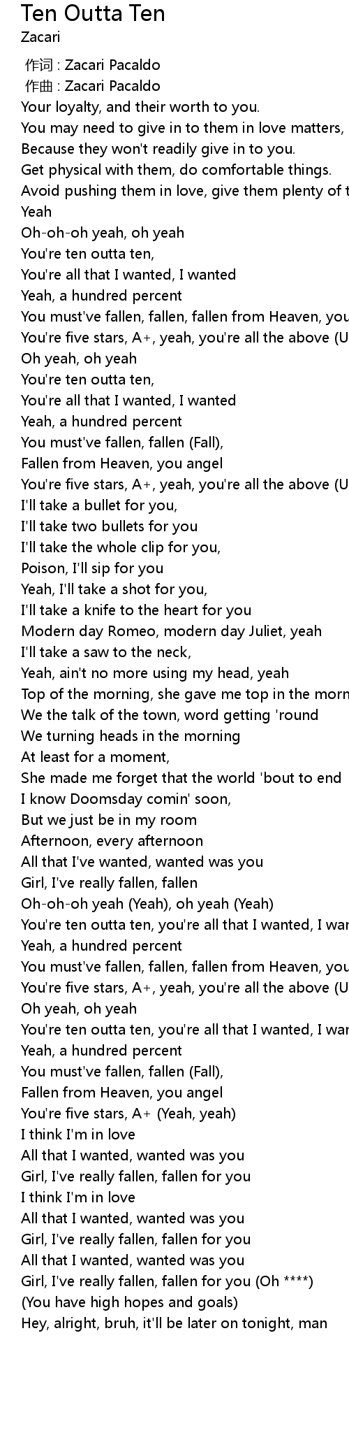 | [00:00.000] | 作词 : Zacari Pacaldo |