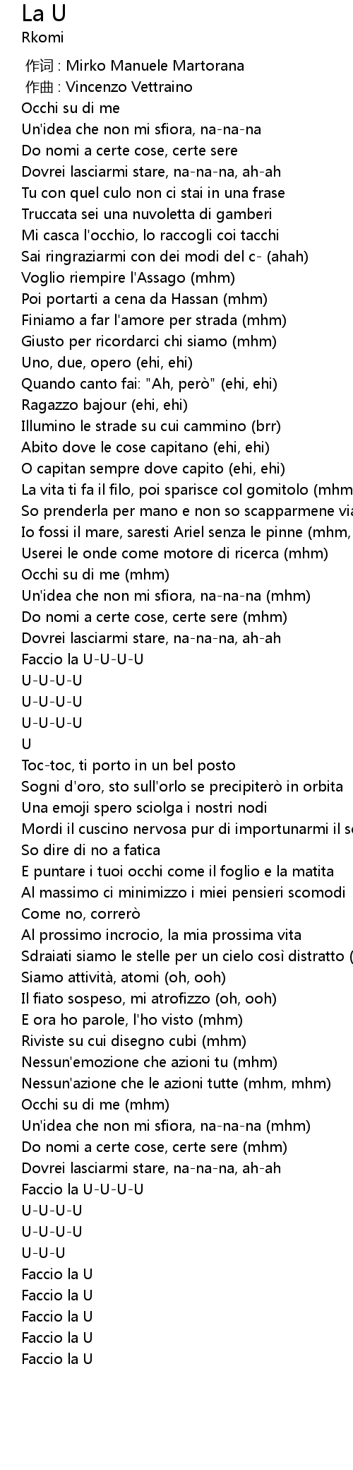 | [00:33.41] | Quando canto fai: "Ah, però" (ehi, ehi) |
