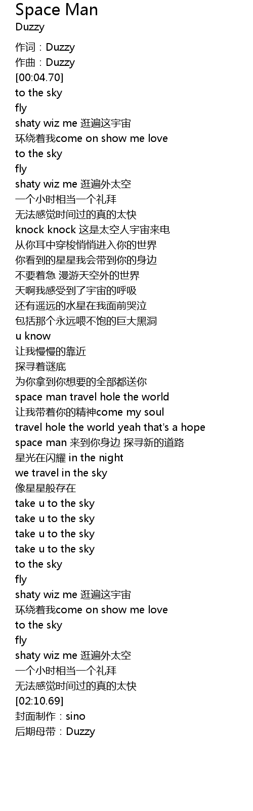 | [01:11.51] | space man travel hole the world |