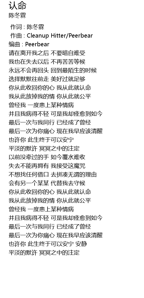| [02:26.956] | 你从此收回你的心 我从此就认命 |