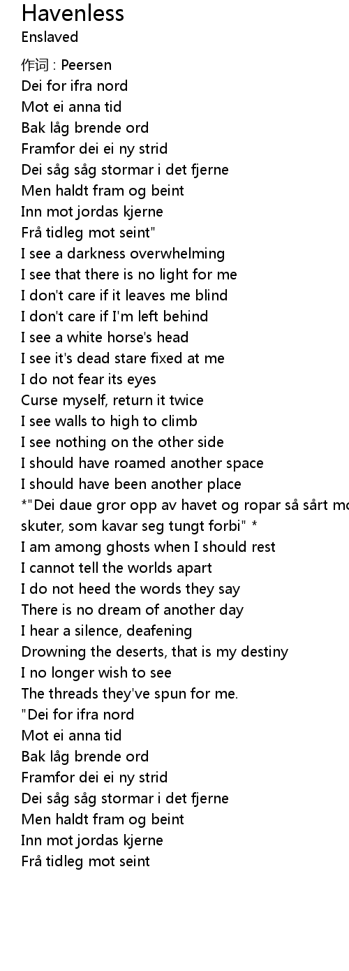 | " Dei daue gror opp av havet og ropar s s rt mot land. Dei ropar bak alle skuter, som kavar seg tungt forbi" | |