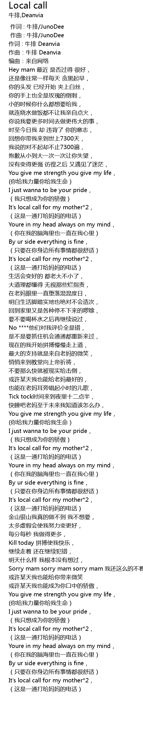 | [03:00.302] | It's local call for my mother*2, |