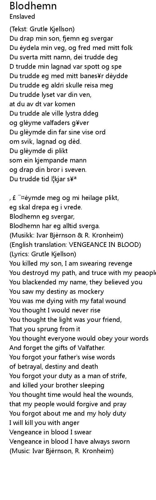 | Blodhemn har eg alltid sverga. | |