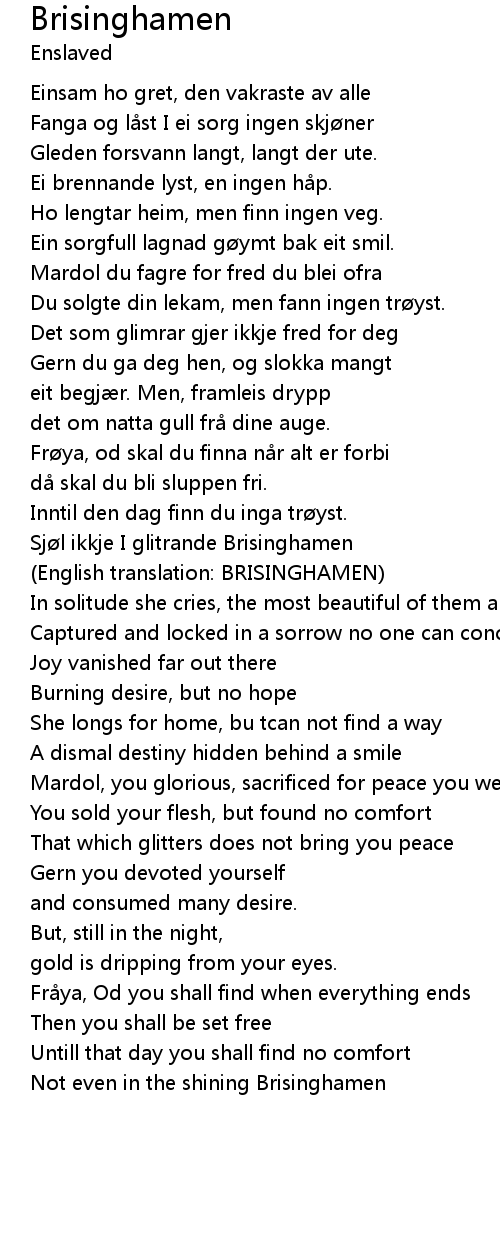 | Sj l ikkje I glitrande Brisinghamen | |