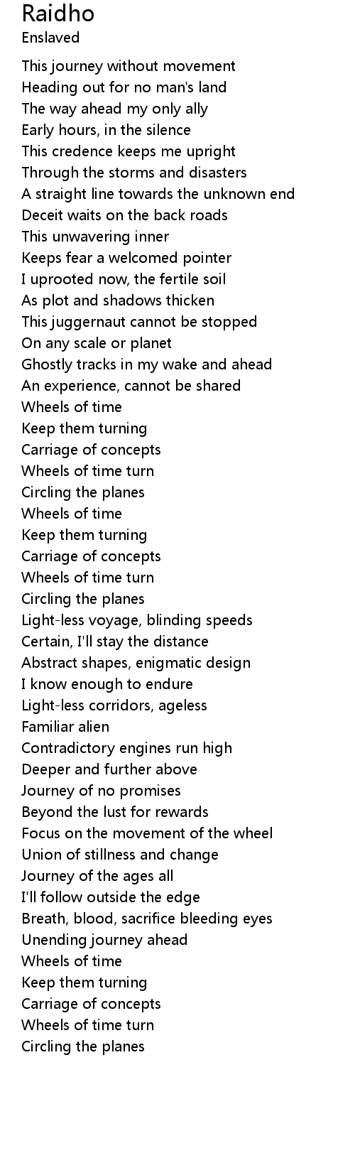Wheels of time turn |