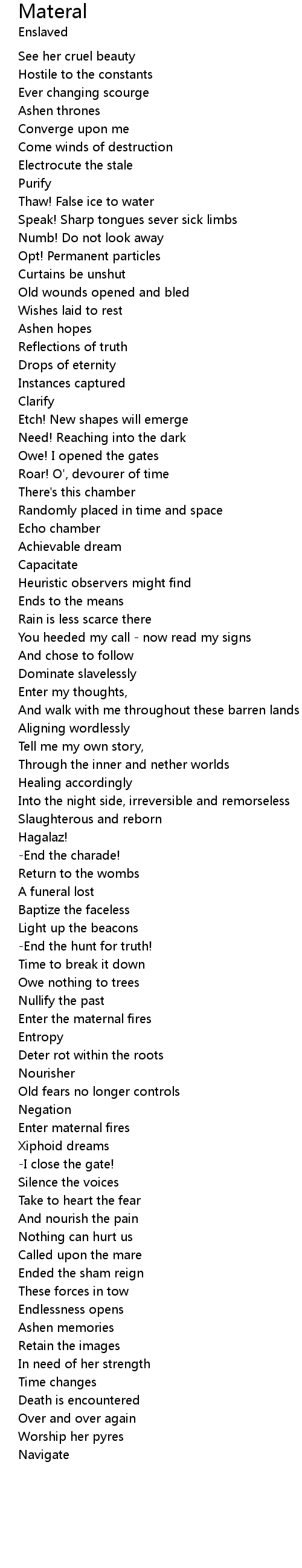 | Enter the maternal fires | |