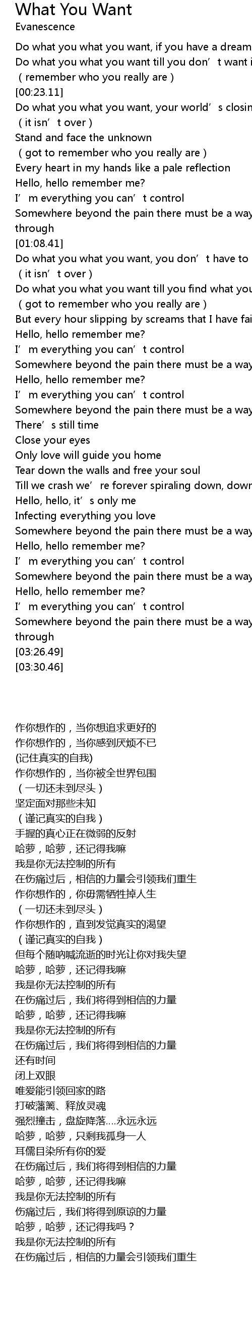 | [01:18.03] | Do what you what you want till you find what you' re looking for |