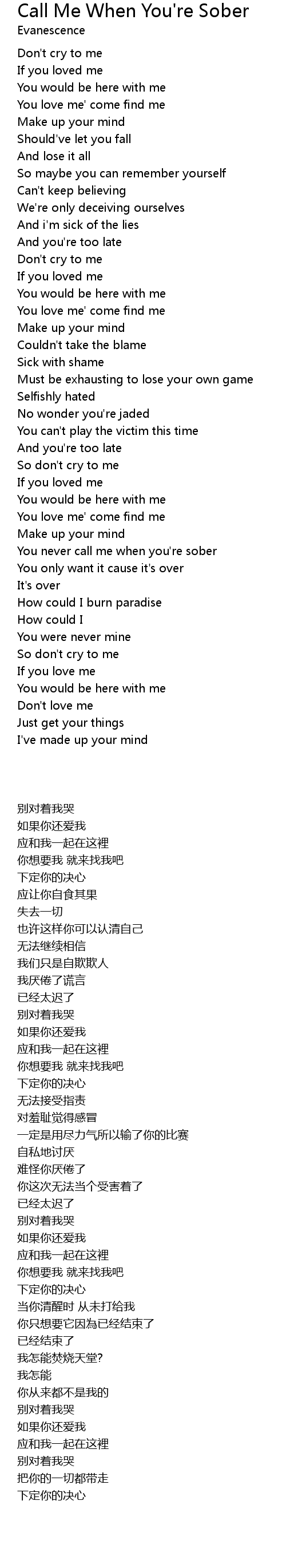You never call me when you're sober |
