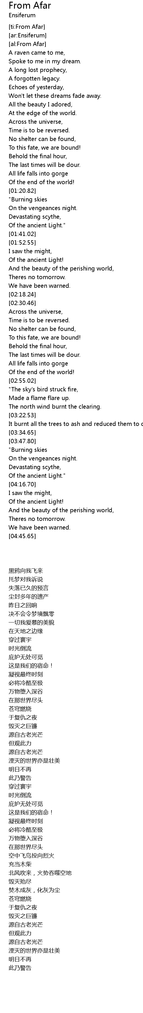| [03:26.25] | It burnt all the trees to ash and reduced them to dust." |