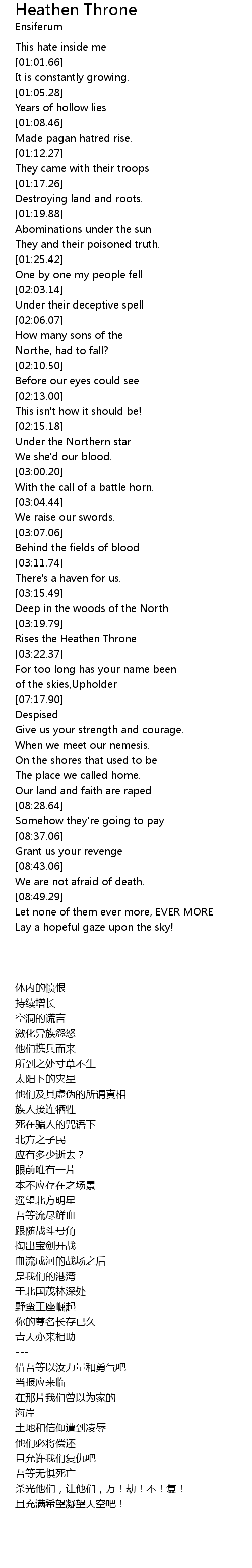 | [03:20.98] | Rises the Heathen Throne |