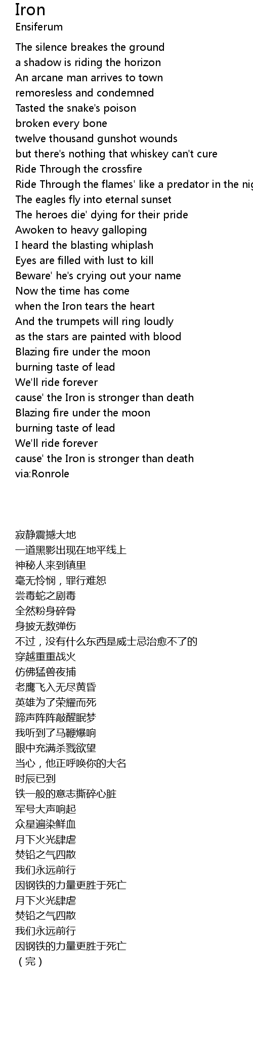 | [01:12.29] | Ride Through the flames' like a predator in the night |