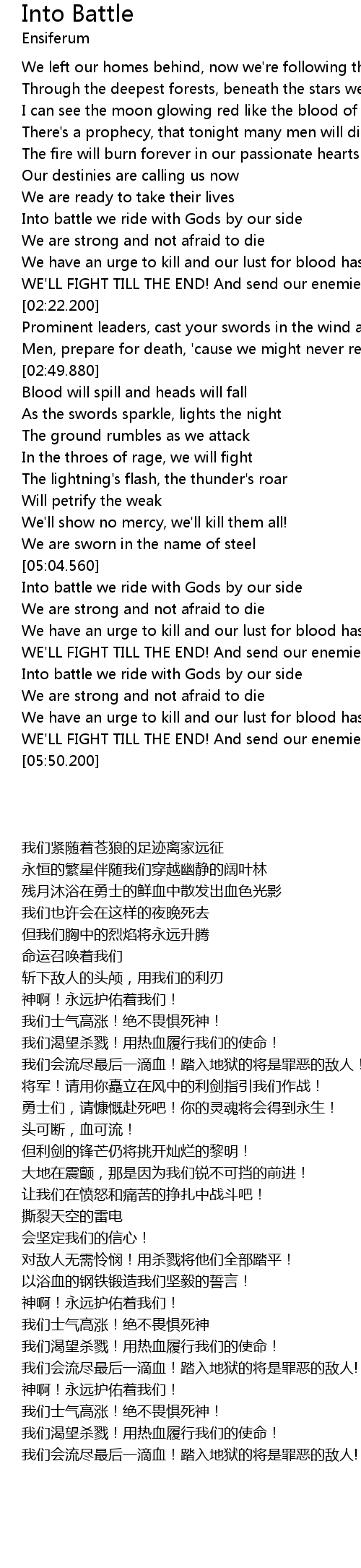 | [05:29.790] | Into battle we ride with Gods by our side |