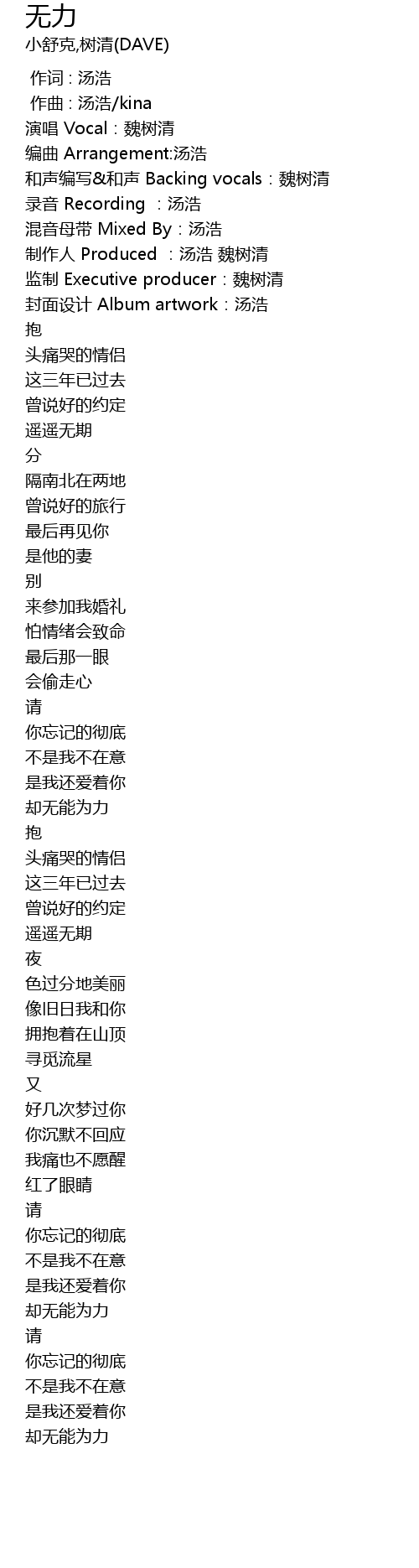 | [00:03.624] | 和声编写&和声 Backing vocals:魏树清 |