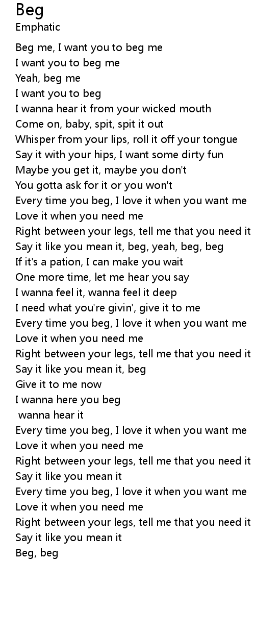 | [01:16.000] | Say it like you mean it, beg, yeah, beg, beg |