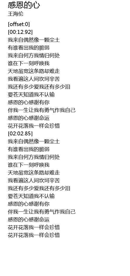| [01:35.57] | 感恩的心感谢有你 |