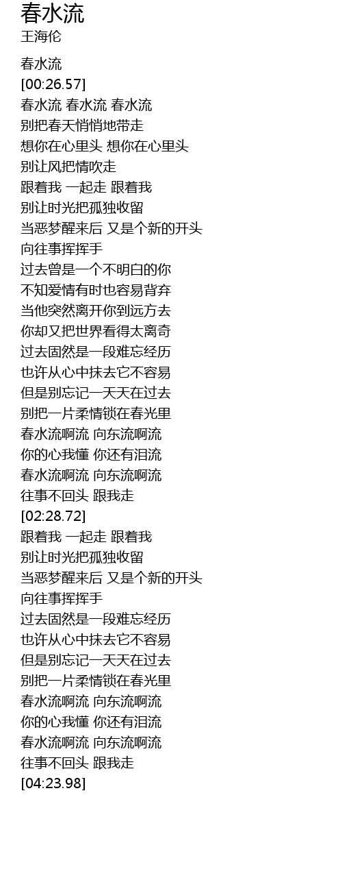 | [04:04.03] | 春水流啊流 向东流啊流 |