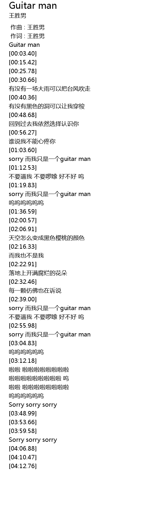 | [02:41.45] | sorry er wo zhi shi yi ge guitar man |