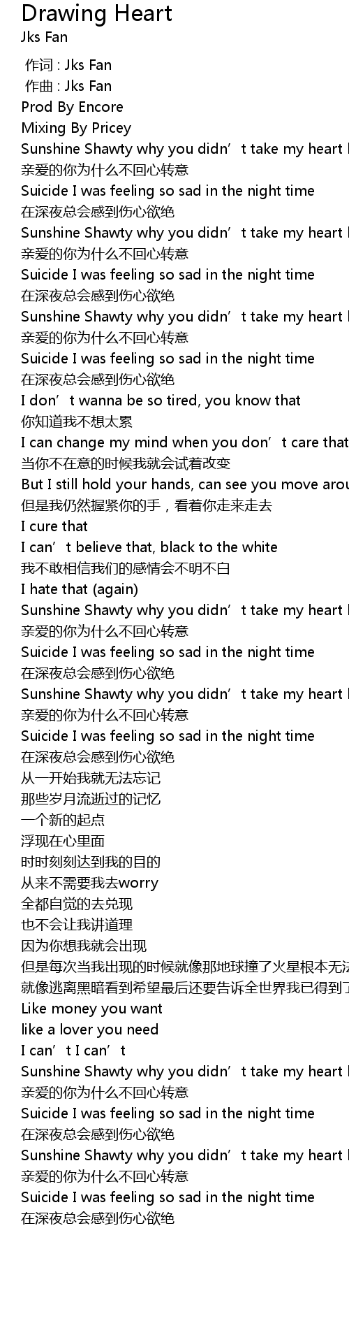 | [00:55.933] | Suicide I was feeling so sad in the night time |