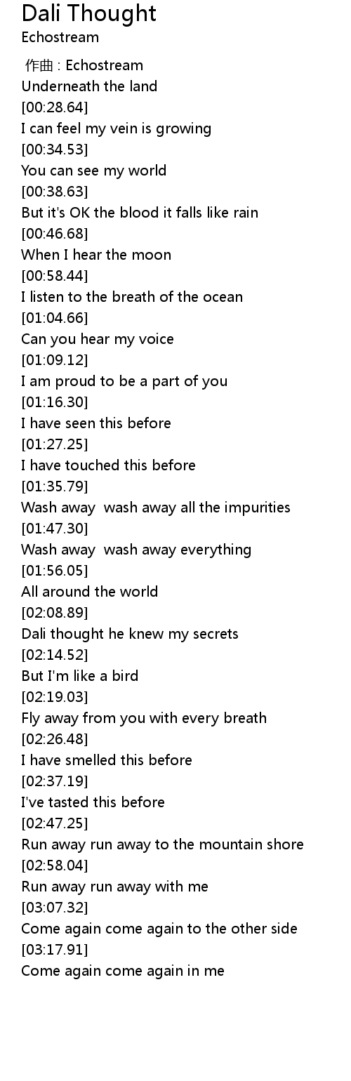 | [02:09.52] | Dali thought he knew my secrets |
