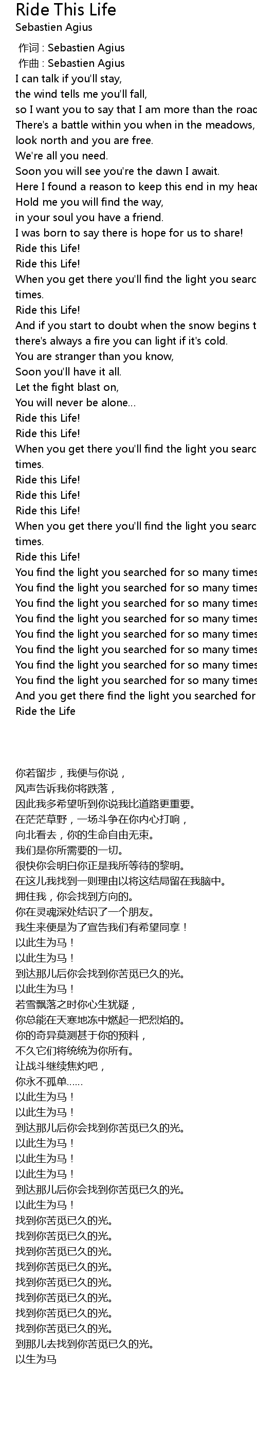 | [01:47.47] | Ride this Life! |