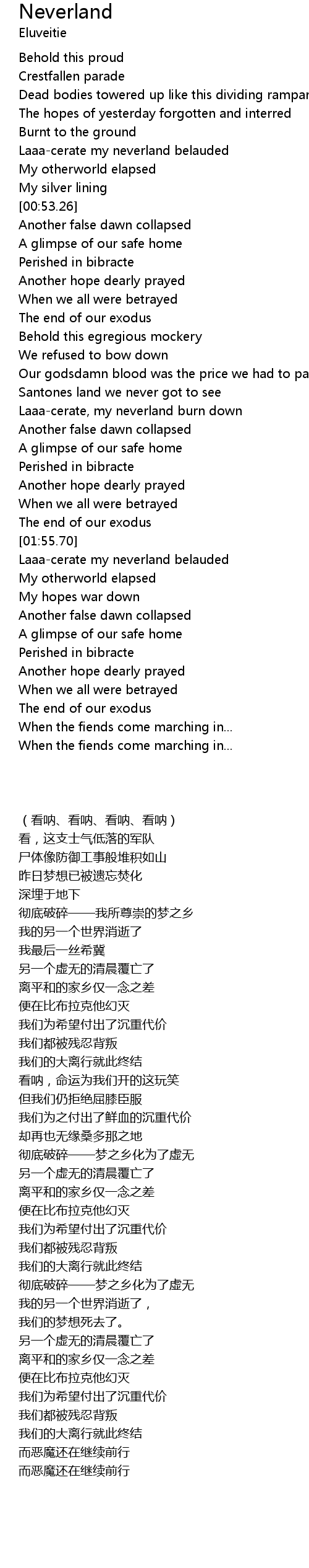 | [00:39.11] | Laaa-cerate my neverland belauded |