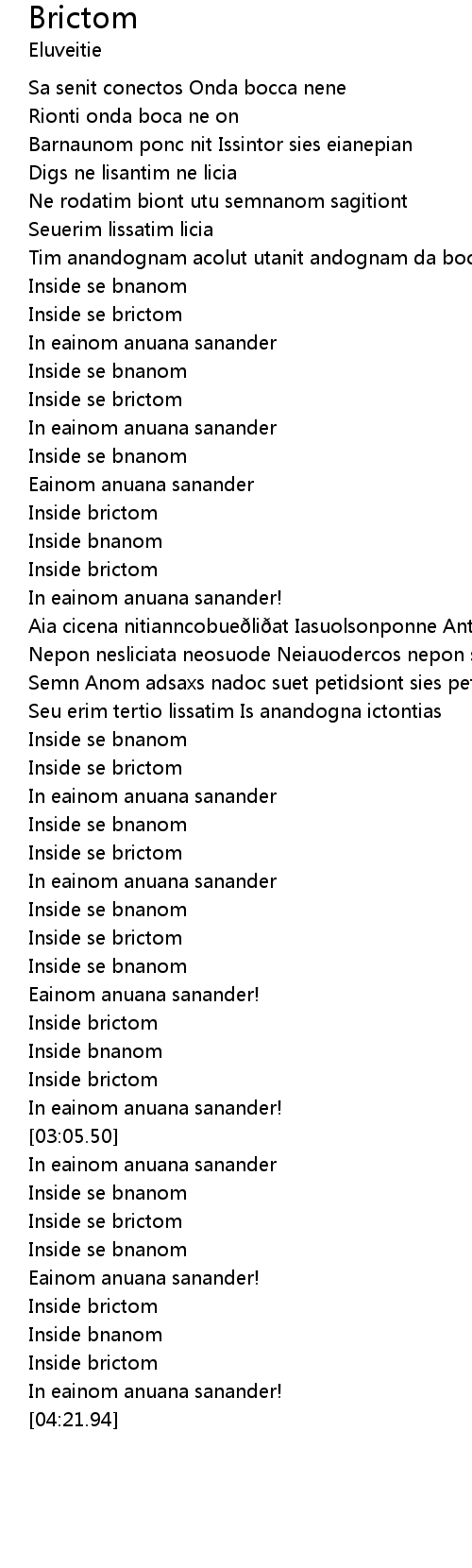 | [01:50.29] | Aia cicena nitianncobueðliðat Iasuolsonponne Antumnos |