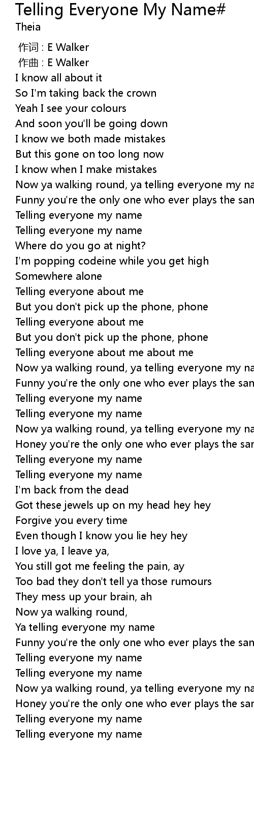 | [00:32.92] | Now ya walking round, ya telling everyone my name |