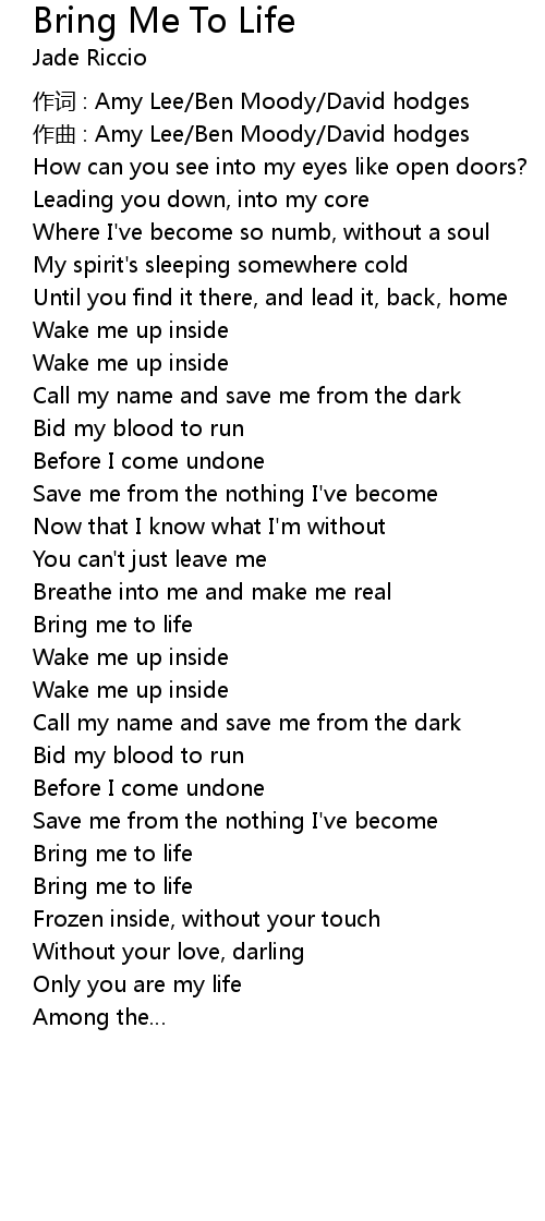 | 作词 : Amy Lee/Ben Moody/David hodges | |