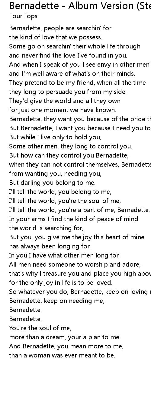 Bernadette, keep on needing me, |